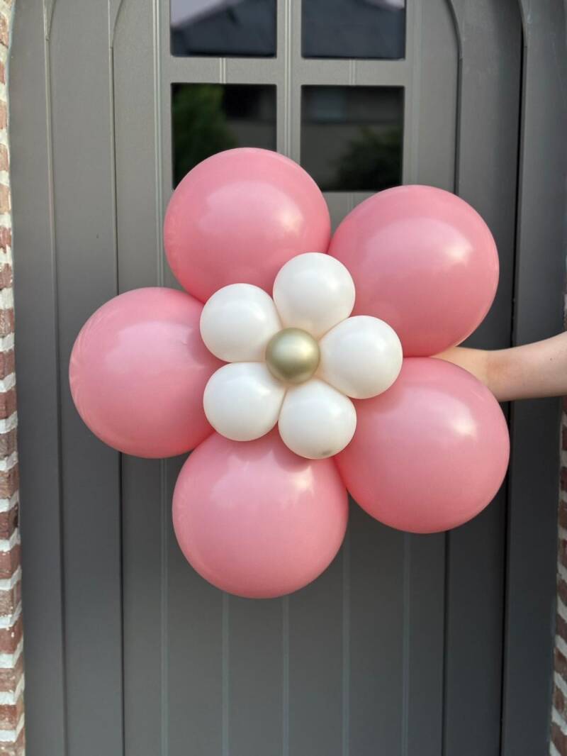 De kleine bloem met 5 inch ballonnen hebben een doorsnede van +/- 30cm, de grote versie met 12 inch ballonnen heeft een doorsnede